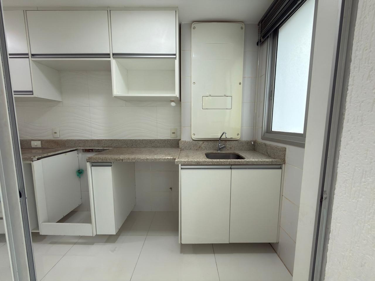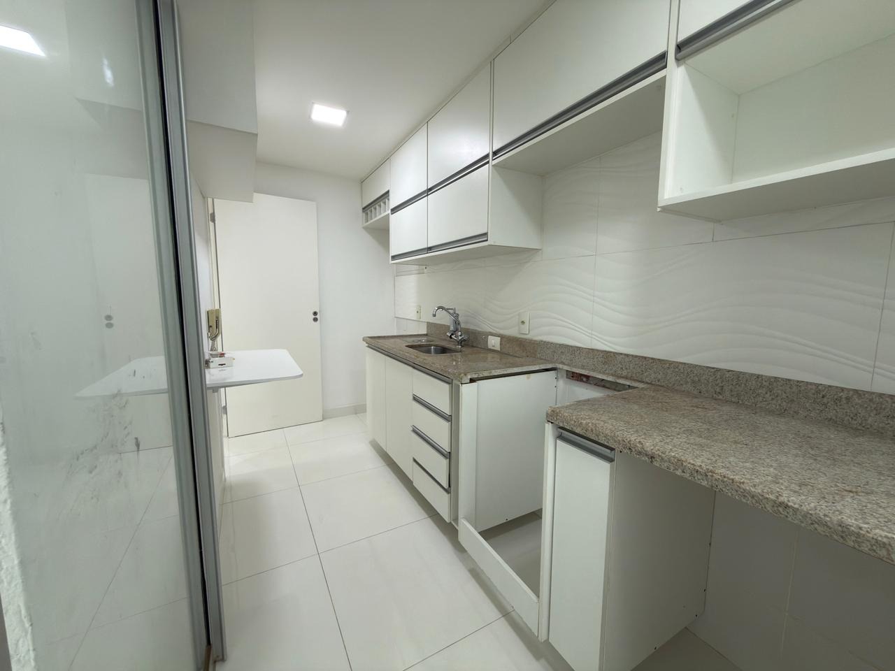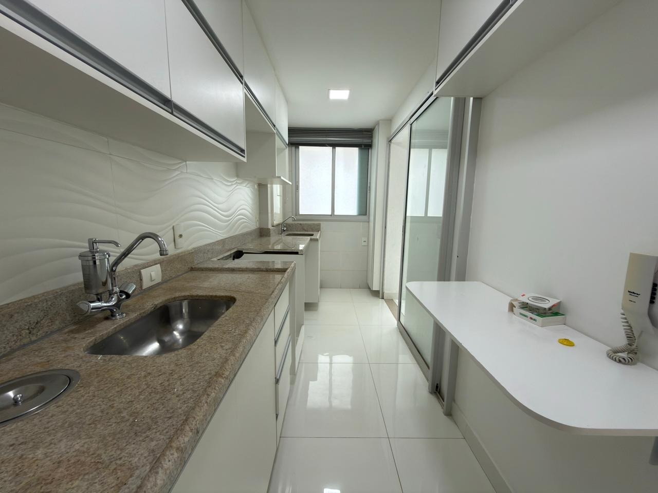 Cozinha integrada à área de serviço, com acesso direto à varanda gourmet