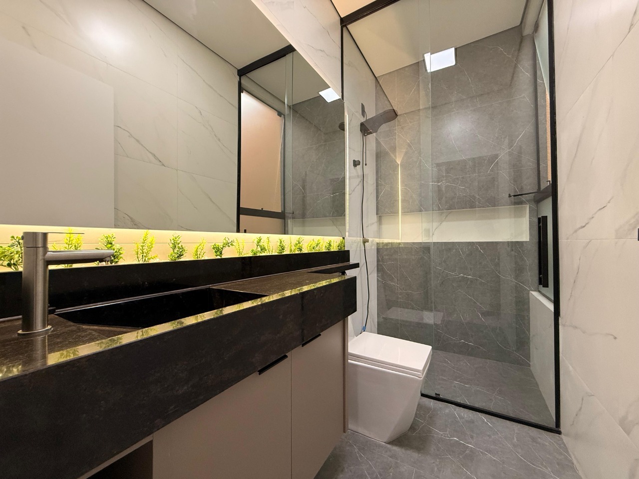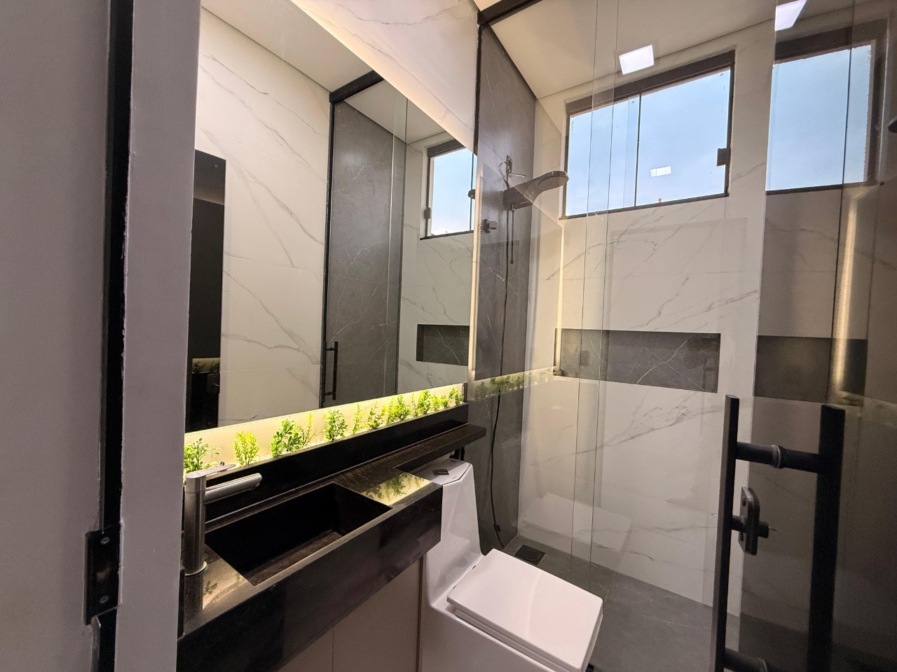 - 3 suítes amplas, todas com closet e jardim de inverno, garantindo conforto e privacidade